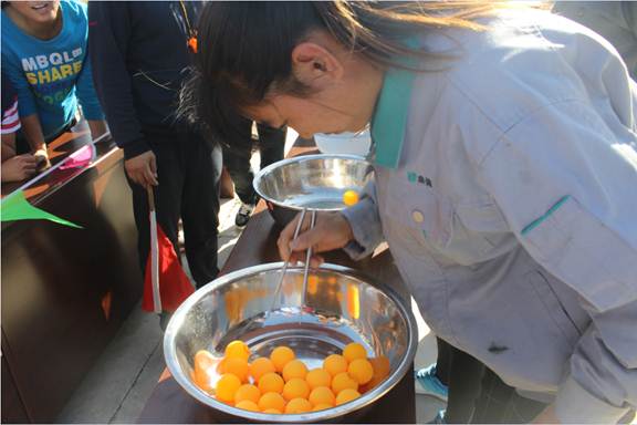 本次趣味运动会共设置了“齐心协力”、“六项全能”、“多人跳绳”、“奔跑吧!袋鼠君”、“拔河比赛”五个团体项目,参赛的队员们在这一天里都迅速的转变角色,个个化身为身手矫健的运动健将。在齐心协力这一环节,平日里温婉可人的女士们,甩开淑女的矜持,在其他观众的阵阵起哄声中,争分夺秒的啃着苹果;在铁筷子夹乒乓球这个环节,难住了不少参赛者,紧张的心情,抖动的双手,无时无刻不在影响着比赛成绩,值得一提的是,骑士队的参赛选手刘宝霞,每次夹球都不落空,神奇般的表现,刹那间震惊了一旁围观的裁判和观众;袋鼠跳项目中,参赛选手们诙谐的比赛动作引得观众们开怀大笑;集体跳大绳比赛中,每队所有成员配合着长绳紧张有序的跳起来,摇绳的队员密切关注着队友们的一举一动,努力配合着跳绳选手的节奏,期间,队长与队员们相互加油,互相扶持,搞笑姿势虽然频出,但互帮互助的行为却贯穿始终;最后一项是拔河比赛,四支参赛的小组,以抽签的形式,进行两两比拼。随着裁判的哨声响起,队员们口中齐声高呼“一二,一二”,双手紧握长绳,憋足了劲不遗余力的拼命往后拉,锣鼓声、呐喊声,此起彼伏......虽是日渐转寒的十月,赛场上却是一片龙腾虎跃,朝气蓬勃的景象。