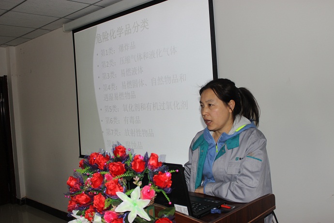 培训过程中,培训师首先从危险化学品的分类、处理处理等多方面进行了深入讲授,并对各类危化品的特征、性质、危害性等进行了详细描述,为了加深业务人员的理解,她还利用图片的形式,生动形象的介绍了危化品的特定包装形态、包装的颜色,物体状态等,使大家一目了然。