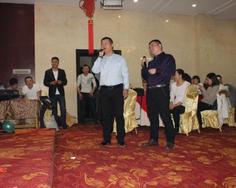 平时严肃正直的安环部经理袁洪革,在换上女儿装后,竟然也不失一丝妩媚。节目过后,袁洪革,吴永利两位同事,合影留念,他们用奉献娱乐的精神恶心了自己,娱乐了大家。为晚会带来了许多的欢声笑语