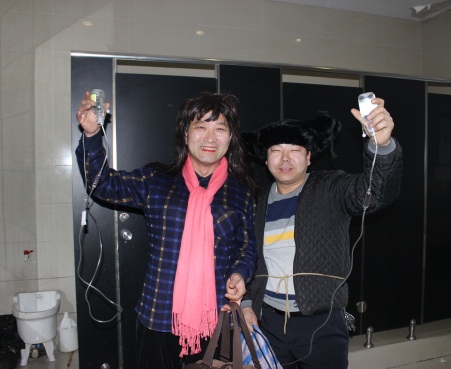 这是公司里的“青年相声演员”赵鹏、任鹏,正所谓大鹏展翅翔于九天之上,他们用诙谐的语言调侃着他们所能调侃的一切,包括我们这位“慈祥的老头”可是他们就不怕这位“慈祥的老头”去踢他们的屁股么