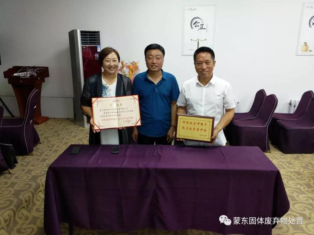 今天(2018年7月22日),内蒙古自治区通辽市奈曼旗环保局局长丛日升带着奈曼旗党委政府和环保部门以及全旗各族群众的深情厚谊来到蒙东公司,将写有“科学排查伸援手,依法处置显神威”字样的奖牌和证书,送到了蒙东公司负责人王亥的手中,这是蒙东公司在参与清废行动中,又一次得到相关地方党委政府和环保部门的首肯和赞誉。